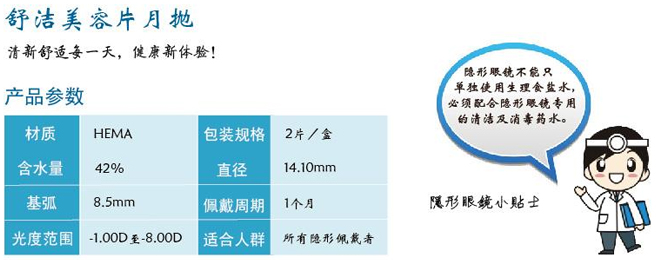 ★模壓和車削結合的生產技術,鏡片中心定位佳。★三明治式制造工藝,色彩不接觸眼球,安心舒適:添加鎖色因子,使顏色外圍形成一道透氧保護層,鎖色但不鎖氧。★多種個性化色彩,潮流時尚必備單品。★定期更換鏡片,避免蛋白質的沉淀產生,減少鏡片護理不當帶來的眼部隱患的幾率,健康安全。