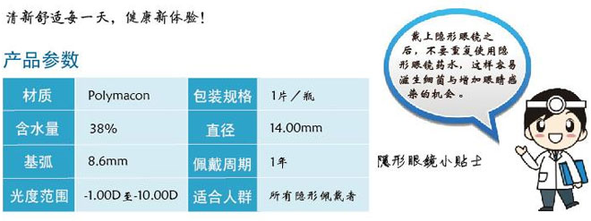 ★進口鏡片材料,具有較好的生理相容性,配戴仿若無物,使您忘記鏡片存在感
